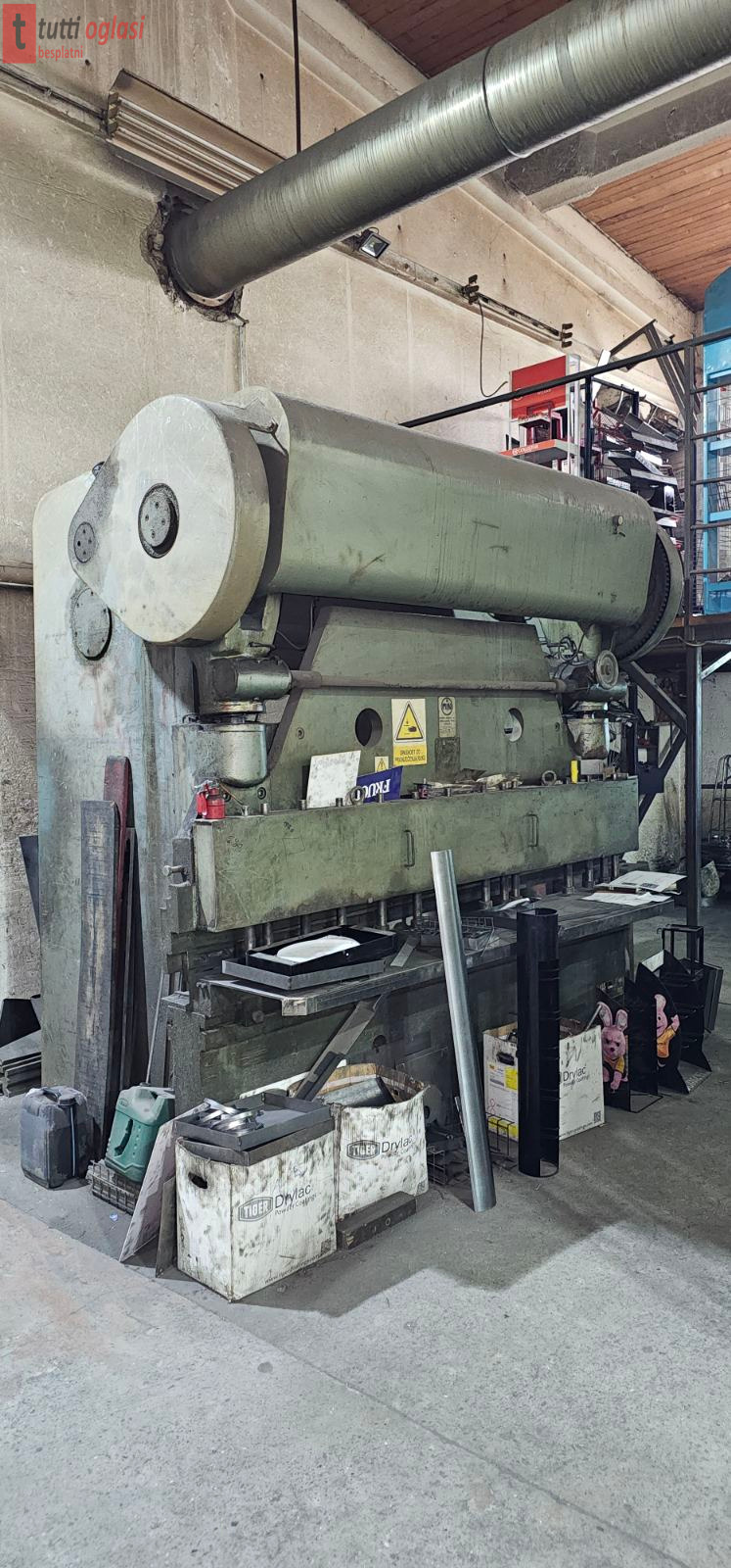 U pitanju je kombinovana masina makaze+apkant presa, pouzadane u radu, centralno podnazivanje, mehanični graničnici, jednostavan elektro orman, dvoručne komande.