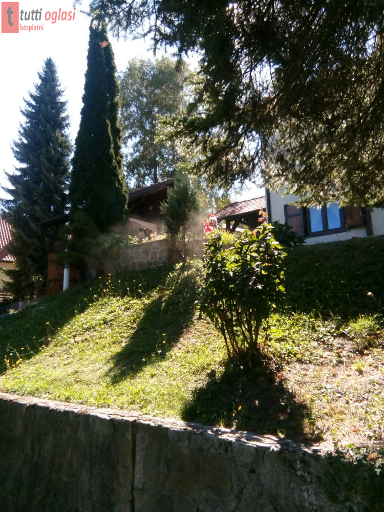Kuća se nalazi na parceli 8,75 ari, koja je projektovana u 4 kaskade i lepo urađenim popločanim stepenicama u kamenu, i posebno ozidanim ostavom (šupom) površine 12 m2.