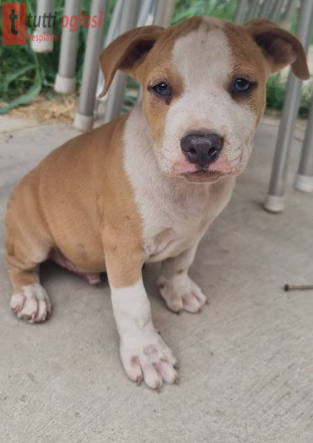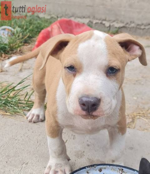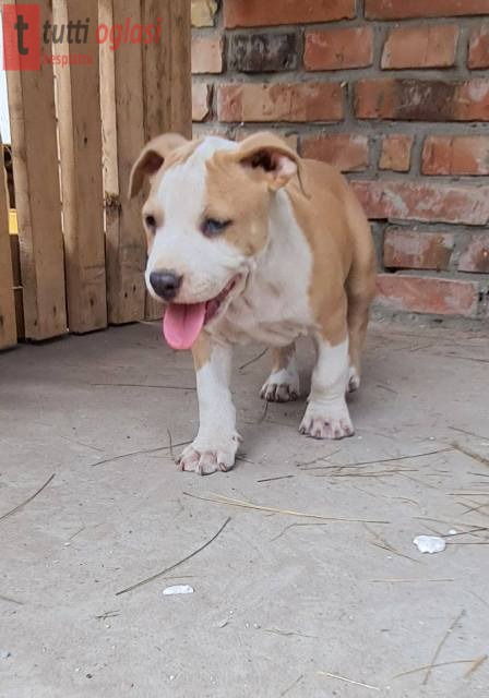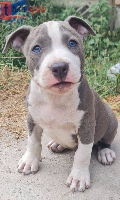 Na prodaju dva muška šteneta rase Plavi Američki Staford, jedan plavo-beli, drugi žuto-beli. Oštenjeni 13.07.2025, preuzimanje posle prve vakcine 13.09.2025. Oba roditelja štenaca su u mom vlasništvu gde se mogu i pogledati. Štenci su profesionalno odnegovani, krupne građe što se vidi i na slikama. Prodaju se bez papira.